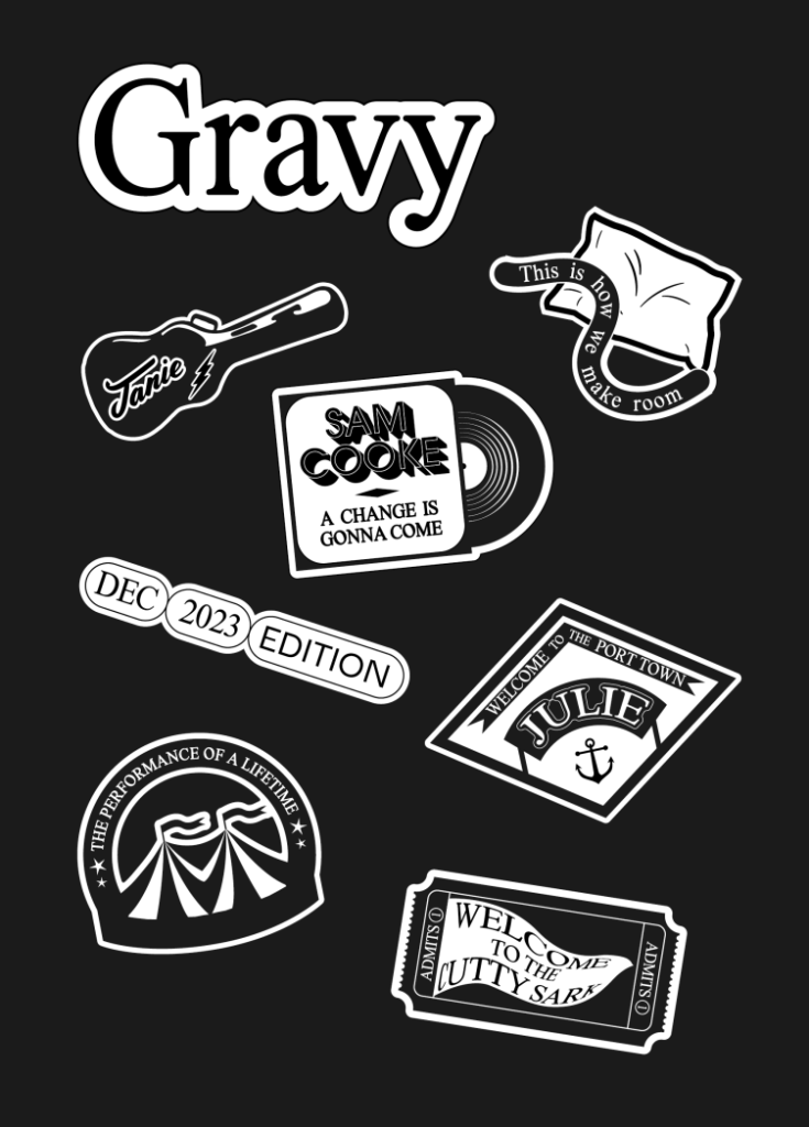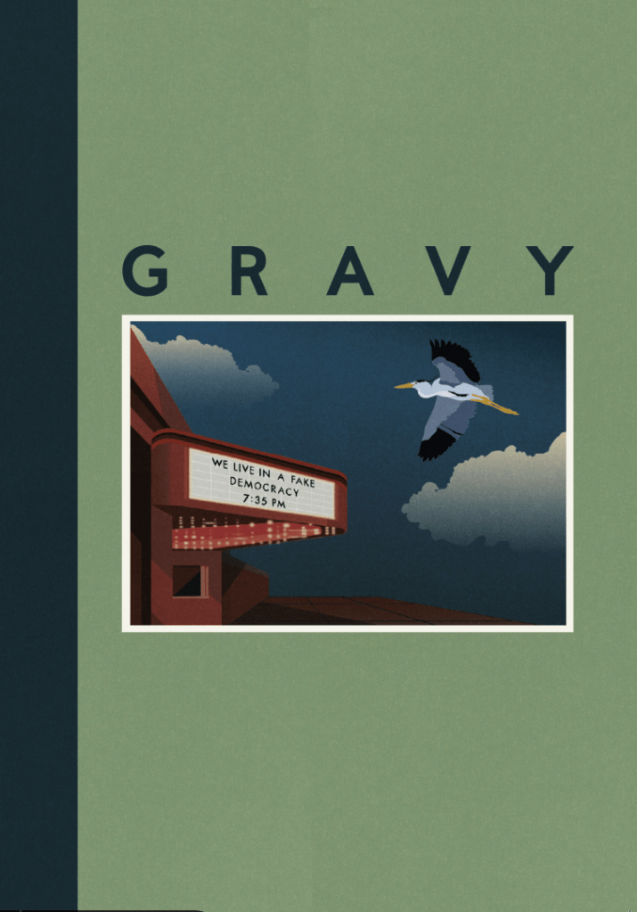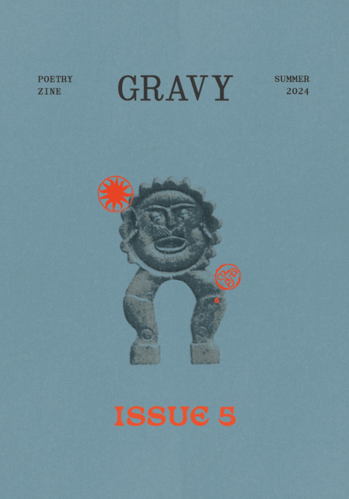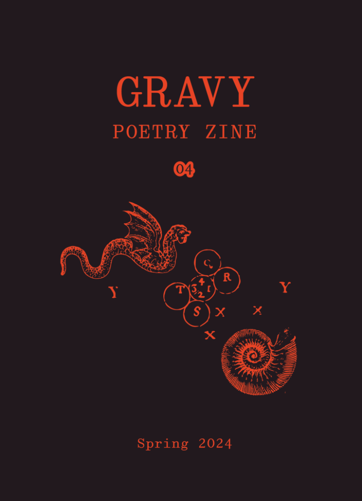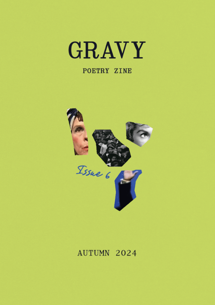 The very first outpouring of GRAVY included poems by Dzifa Benson, Caroline Bird, Joe Carrick-Varty, Edgar Kunz & Camille Ralphs, original artworks by Lucy Reis & Lee Hybrid Desire, and questionable recipes by Emily Dickinson & TS Eliot.