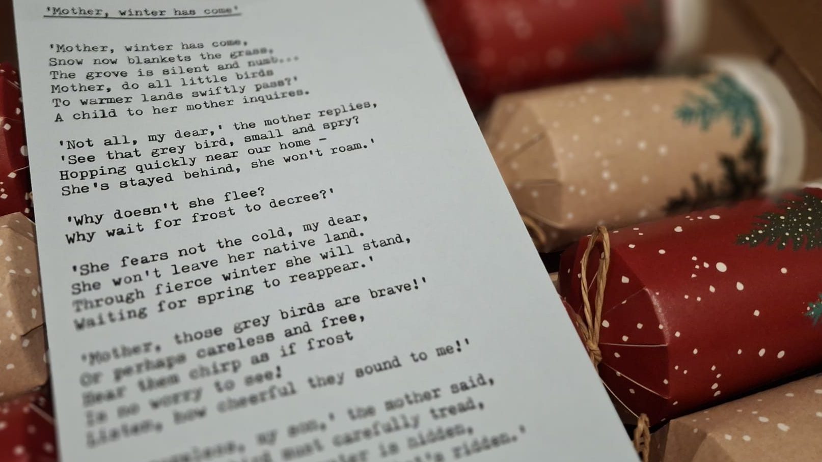 Thinking outside the box, we presented our seventh issue inside a box – as half a dozen Christmas crackers, stuffed with multi-coloured poems about winter by Hannah Copley, Timothy Fox, John Keats, Ali Lewis, Lesya Ukrainka (translated by Valery Reva) & Ruth Wiggins, lovingly typed out on a 1940s Remington Remette.